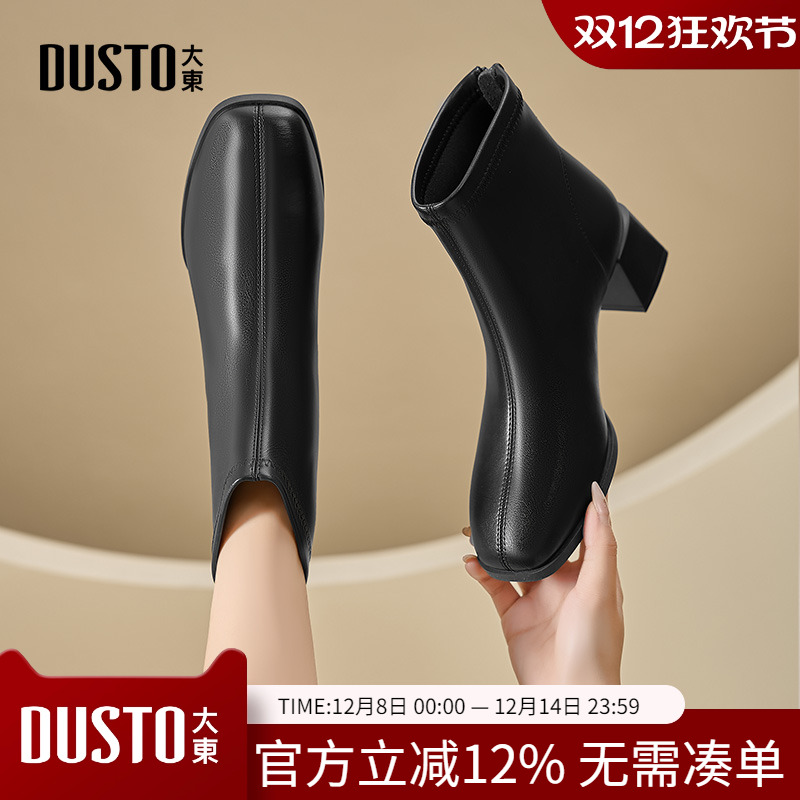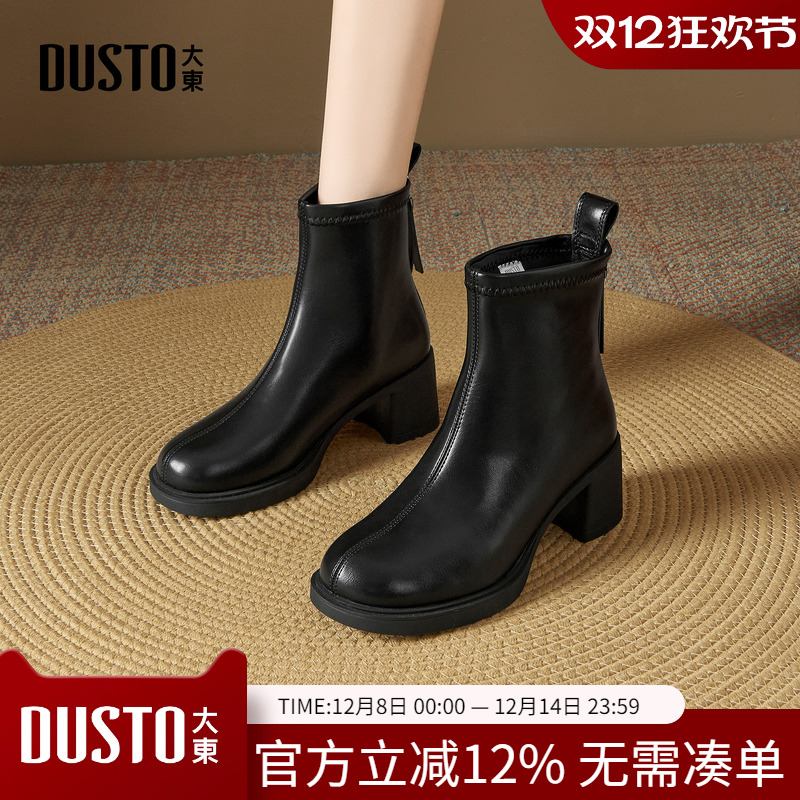 大东dd小短靴女2025新款秋季女鞋单靴高跟鞋方头靴子爆款马丁靴女