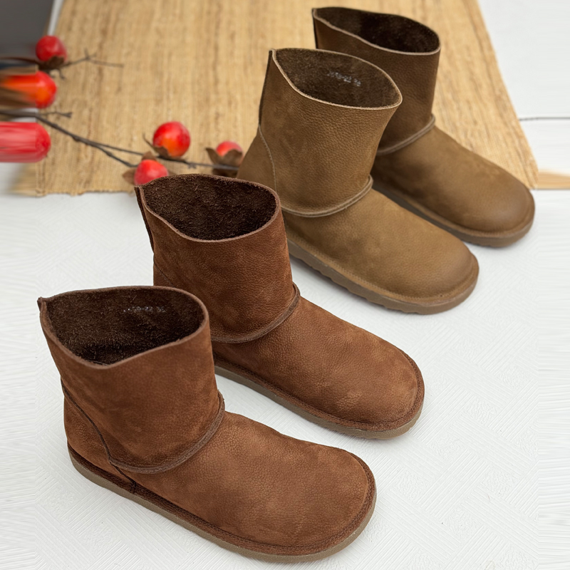 真皮短靴女单靴加绒保暖牛皮中筒马丁靴秋冬季雪地靴女士妈妈靴子