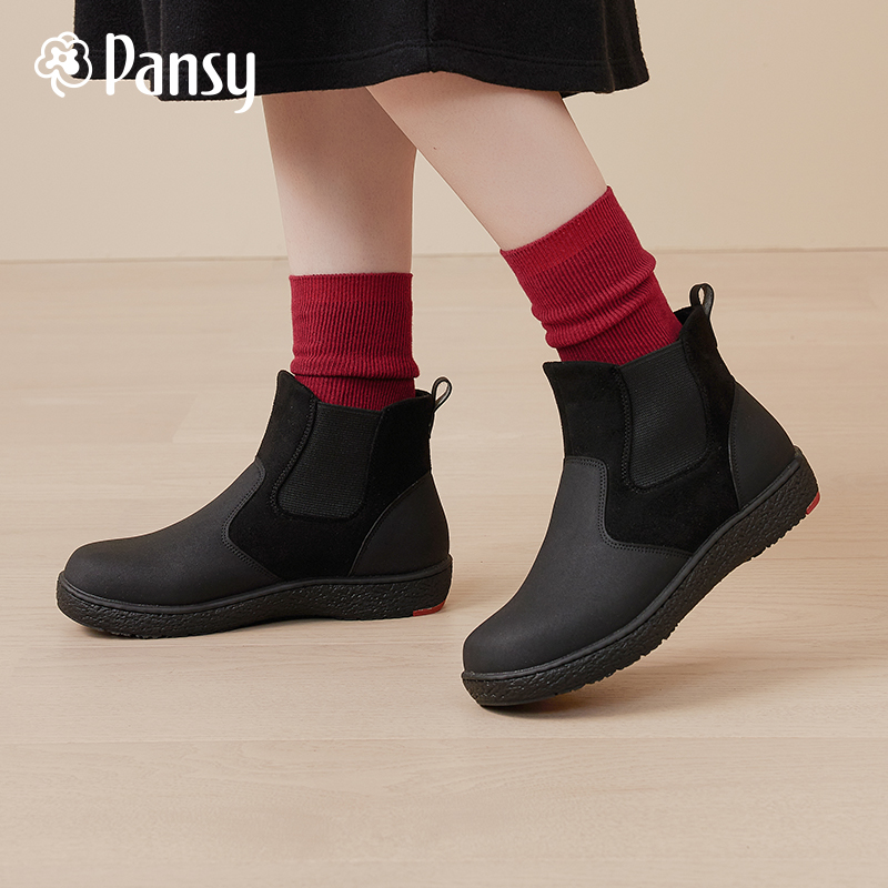 Pansy盼喜日本女鞋单靴秋季休闲保暖切尔西短靴平底妈妈鞋靴子