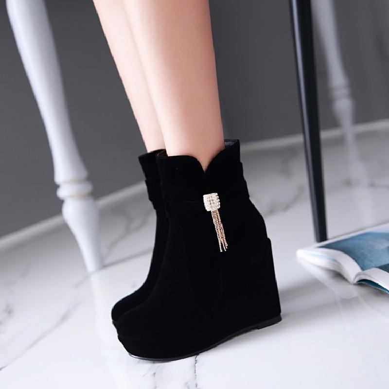 冬鞋坡跟女鞋单靴厚底高跟黑色马丁靴秋冬季圆头女靴子加绒小短靴