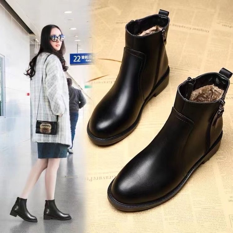 2025秋冬季新款短靴甜美小清新低跟马丁靴子防滑平跟女鞋单靴裸靴