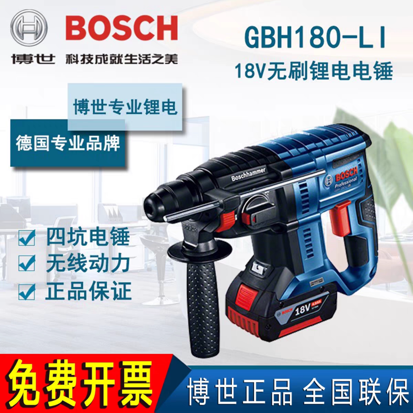 德国博世锂电电锤电镐冲击钻充电多功能家用混凝土GBH 180-LI