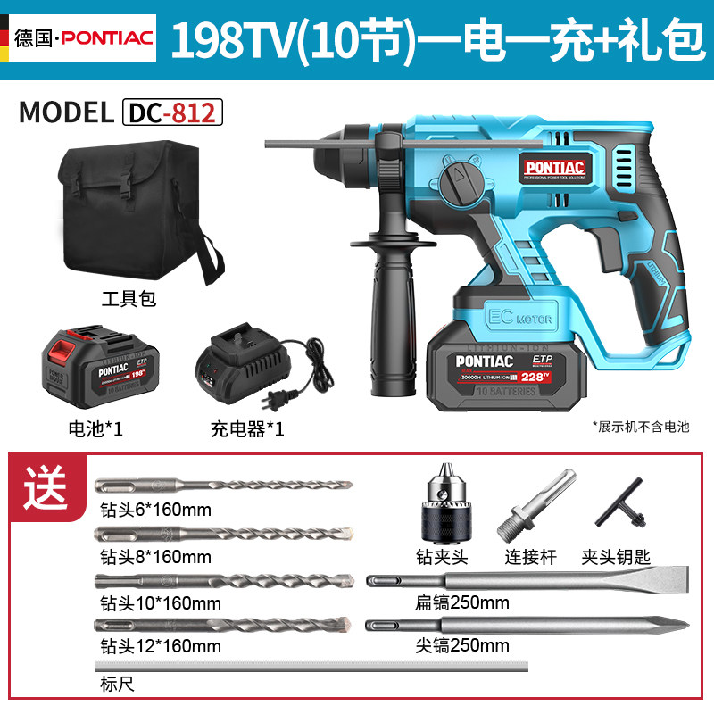 德国锂电大功率电锤家用电动冲击钻打混凝土无线充电工具电锺电镐