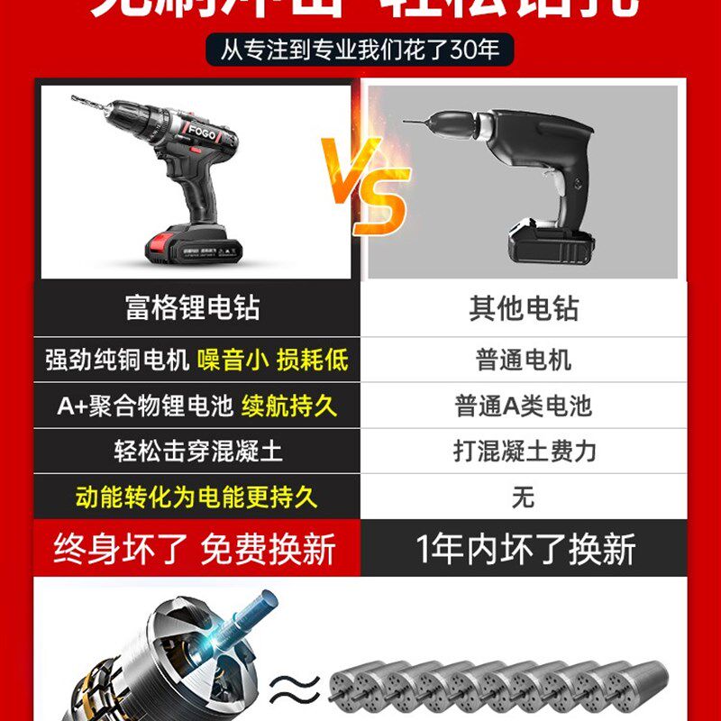德国捷弗利大功率手电钻充电枪钻多功能锂电36VF48VF冲击88TV无刷