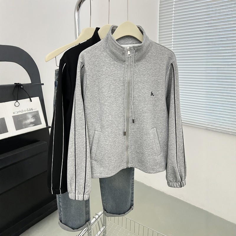 休闲运动立领小外套女小个子秋冬加绒刺绣拉链卫衣开衫夹克上衣bf