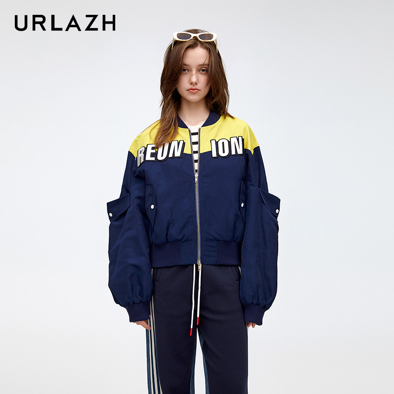 URLAZH有兰新款复古休闲宽松时尚设计感撞色BF风刺绣棒球外套女