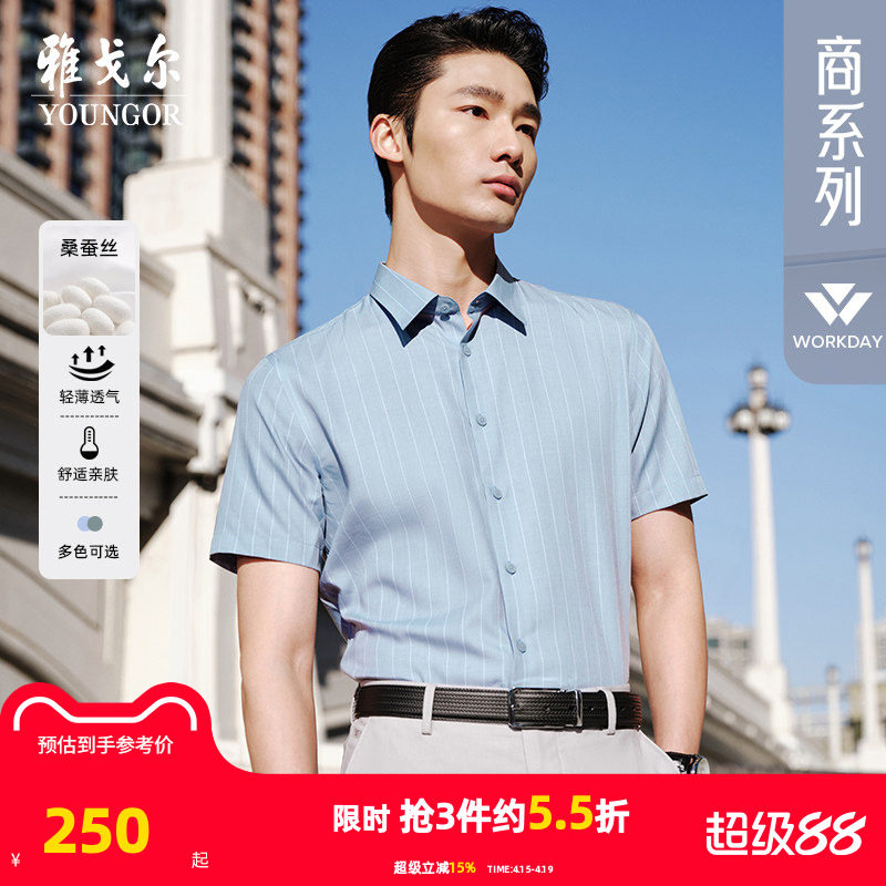 【桑蚕丝易打理】雅戈尔官方夏季新品商务休闲条纹衬衣短袖衬衫男