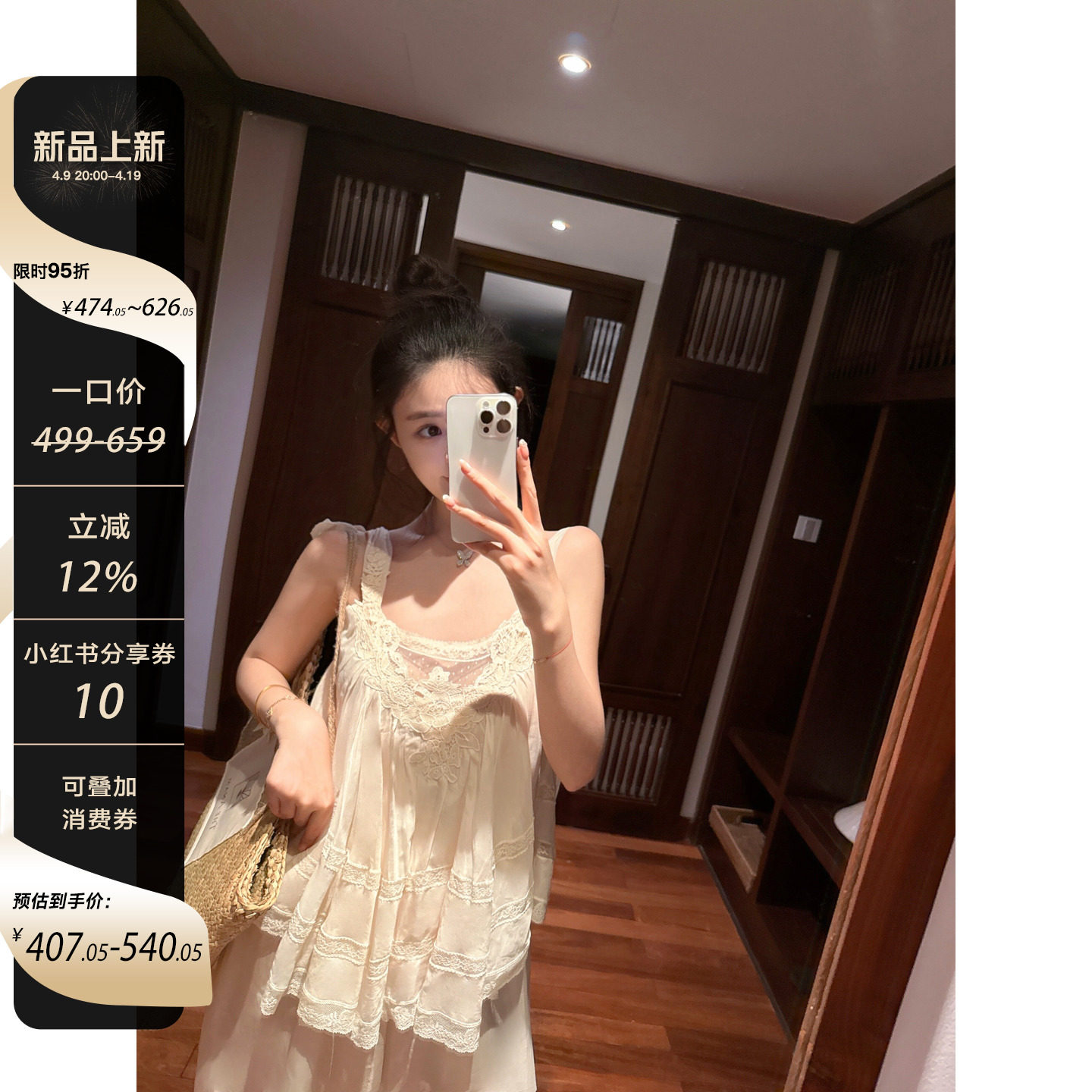 X【叭哒不惑】 小溪生活 桑蚕丝时尚吊带印花气质宽松长款连衣裙