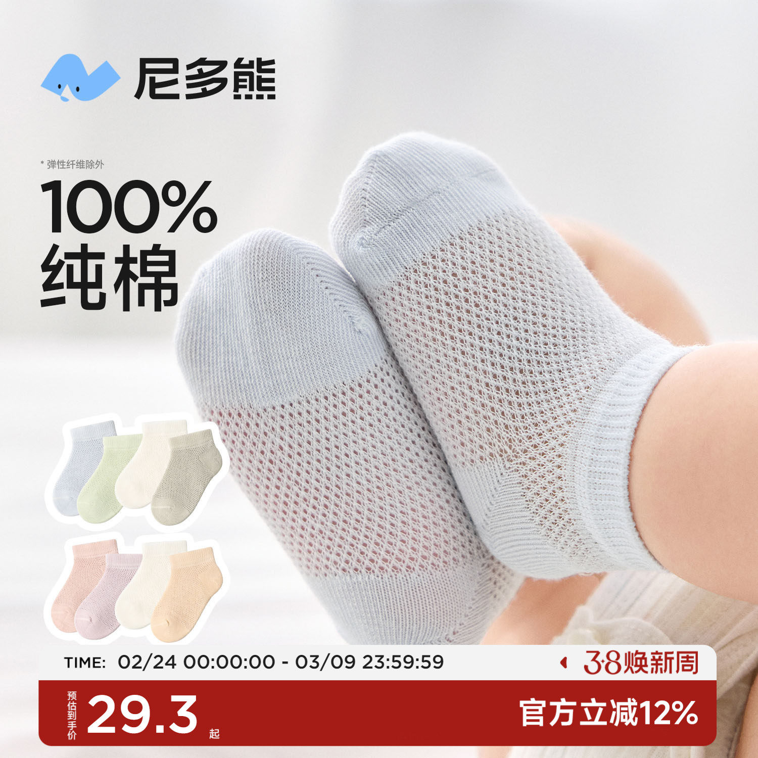 尼多熊婴儿袜子春夏薄款纯棉袜a类男女宝宝袜儿童全棉袜无骨不勒
