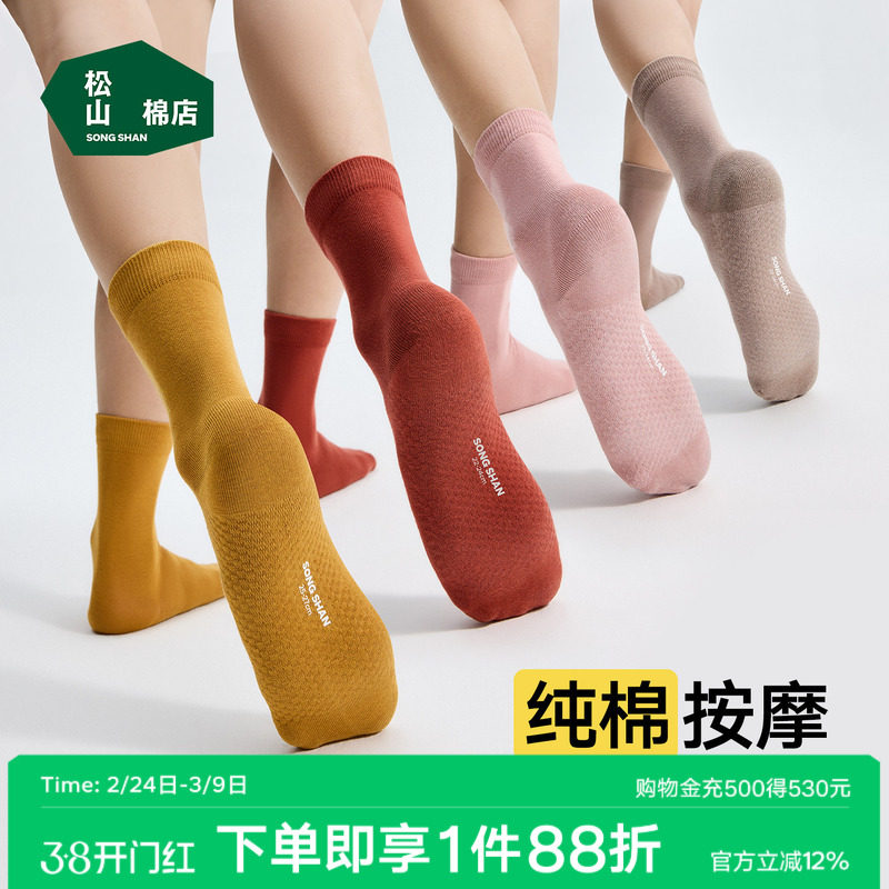 松山棉店足底按摩袜子纯棉抗菌防臭男女短袜中筒袜长筒夏薄款棉袜