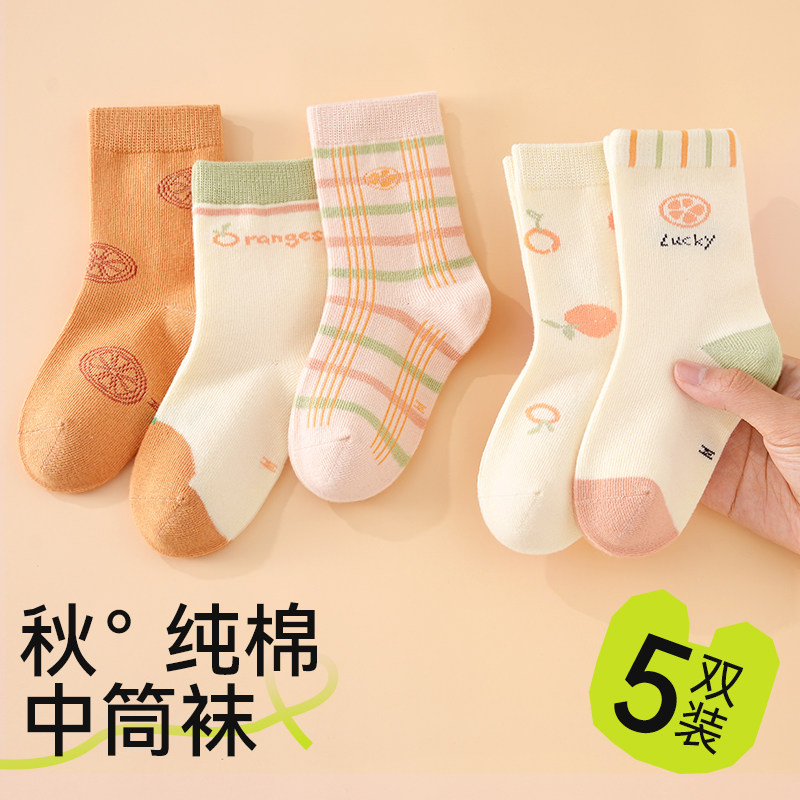 儿童袜子秋款纯棉童袜女孩宝宝春秋薄款男童中筒棉袜女宝女童秋冬