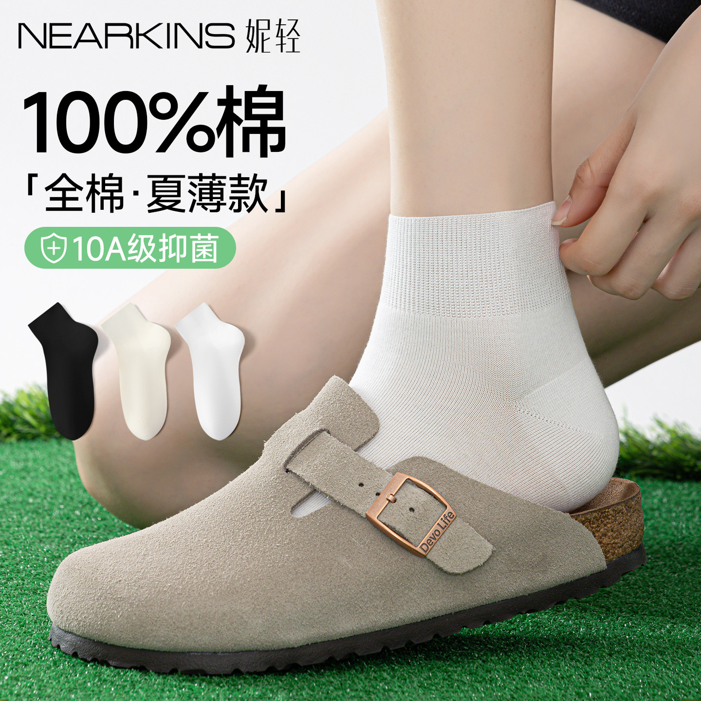 亲相见100%棉袜子女纯棉松口袜夏薄款防臭抗菌白色无骨月子中筒袜