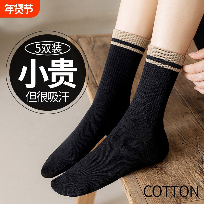 袜子女春秋季新款纯色防臭中筒袜薄款休闲纯棉吸汗中高腰女士棉袜