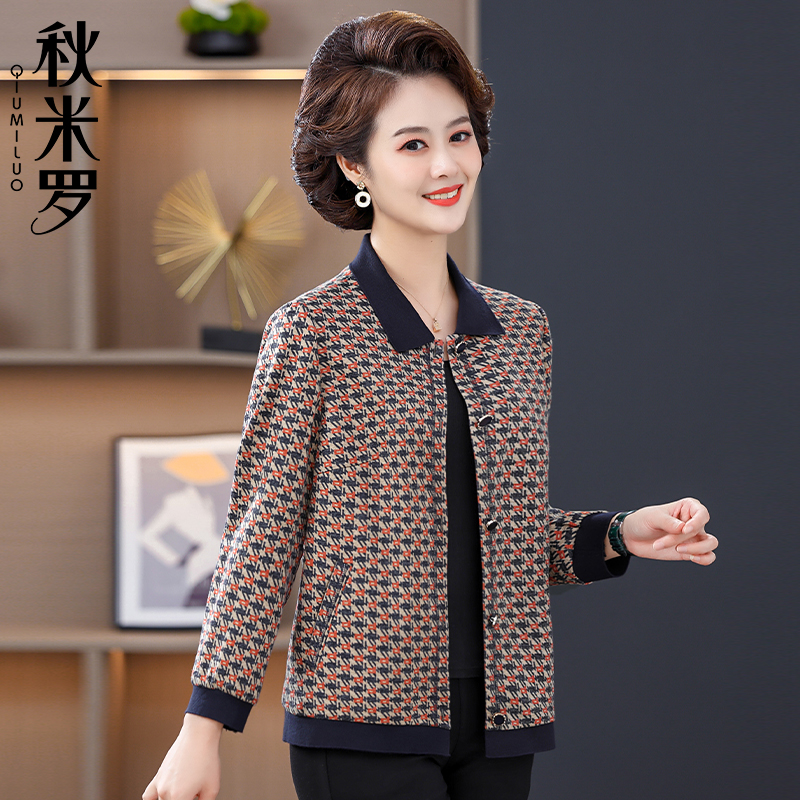 妈妈春秋洋气外套2024新款中年女士夹克开衫中老年人时尚翻领上衣