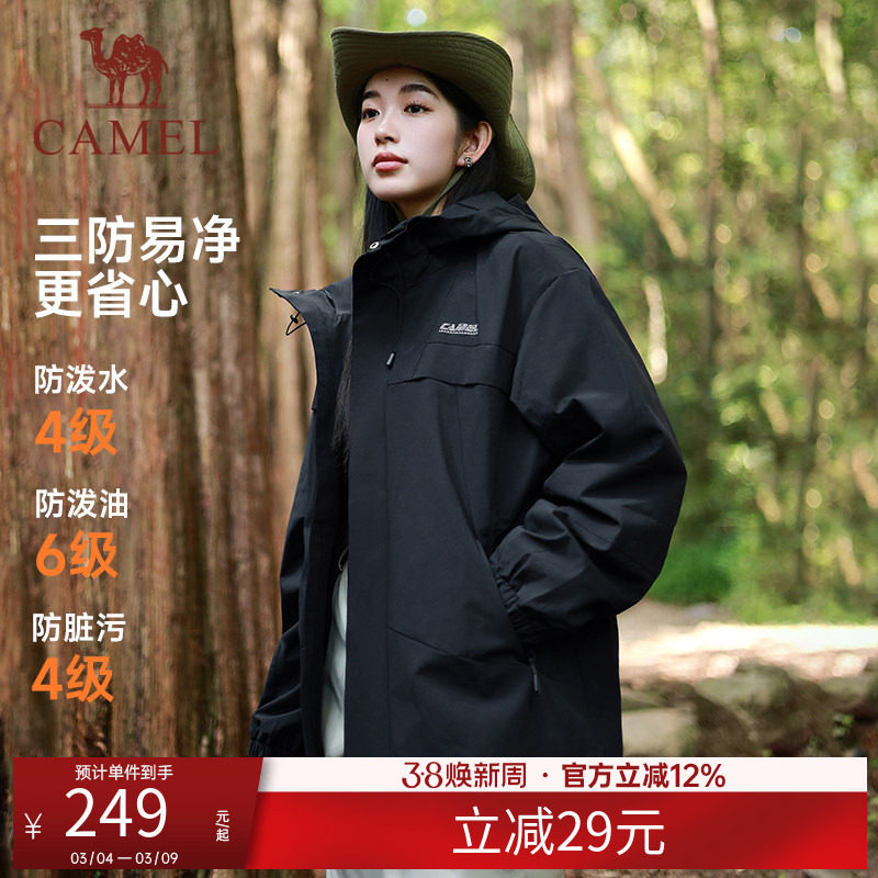 骆驼运动外套女士春秋季2025薄绒梭织连帽风衣休闲开衫夹克上衣男