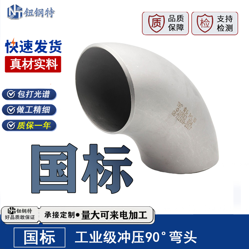 304不锈钢弯头90度直角焊接32无缝工业级对焊冲压弯头管件12-406
