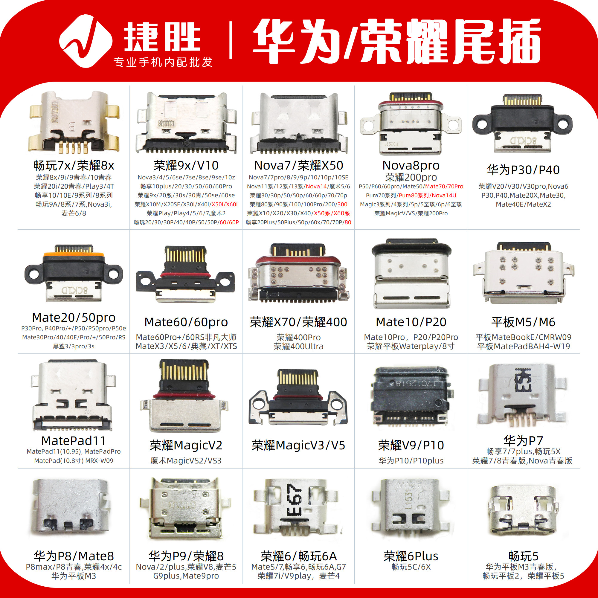 适用华为P30荣耀10畅玩7x畅享9mate20nova5/6/7/8/9安卓尾插接口