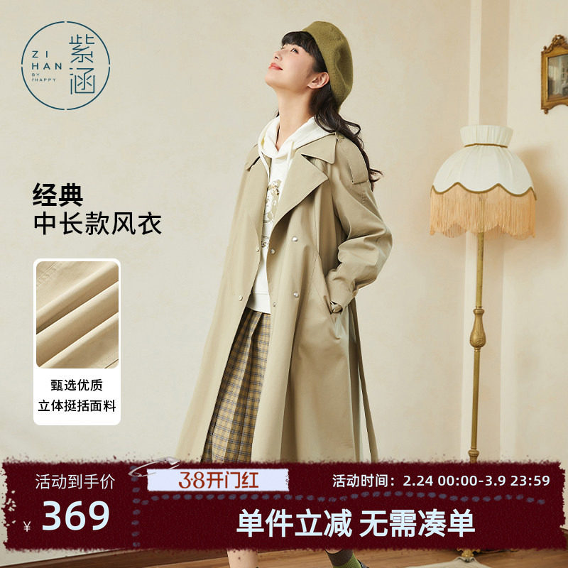 紫涵中长款直筒风衣外套女春秋新款休闲英伦风小个子宽松薄款大衣