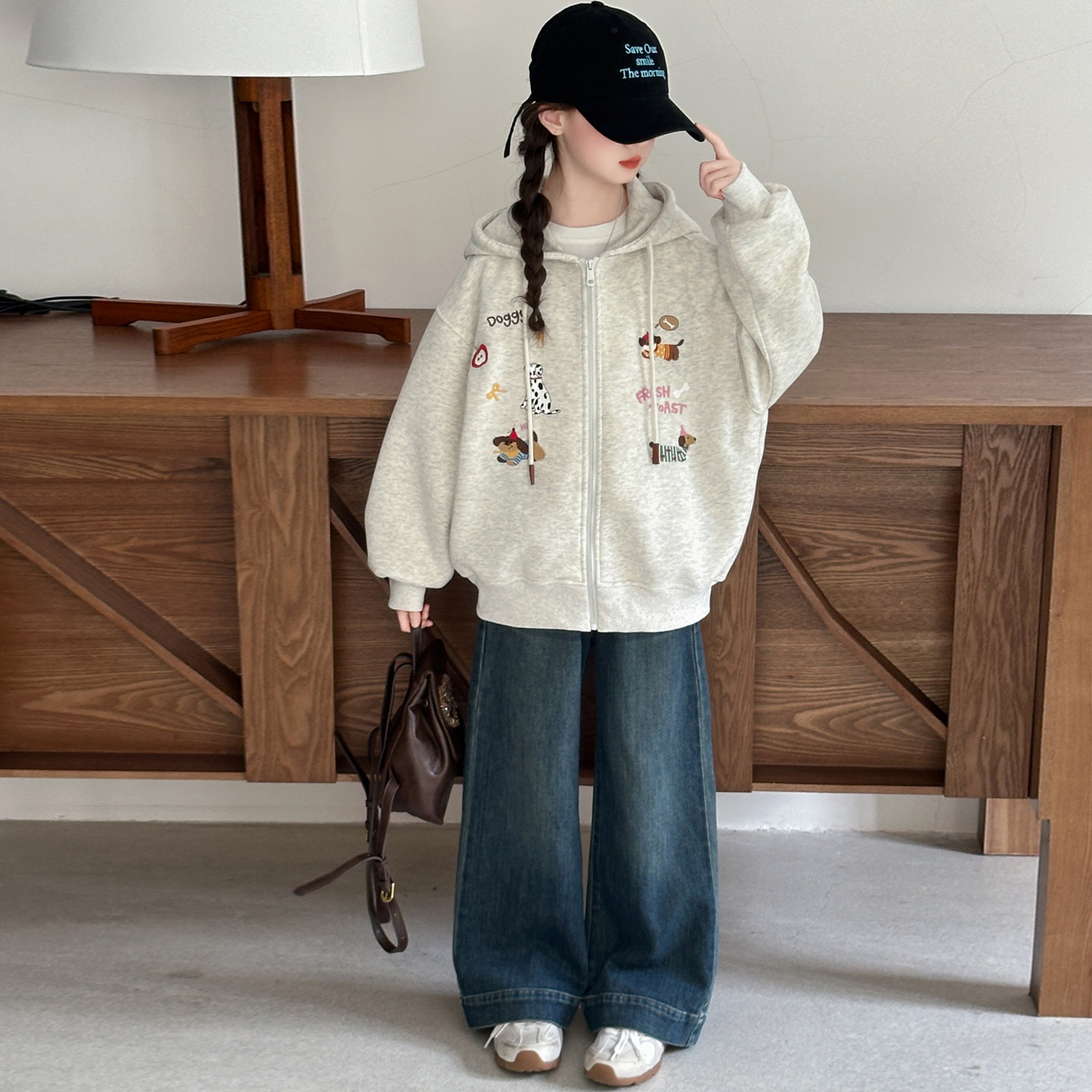 女童春秋款休闲卫衣外套2026新款洋气春装初中生女孩宽松夹克上衣