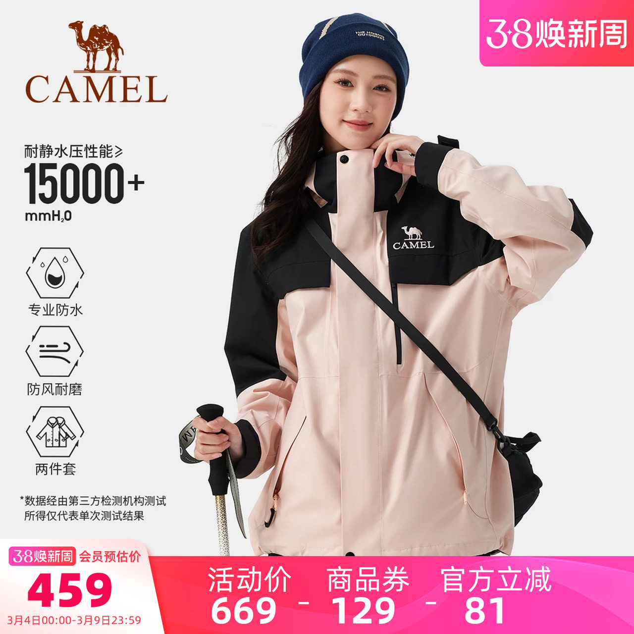 骆驼女装冲锋衣外套三合一2026春秋户外登山服防风防水休闲外套女