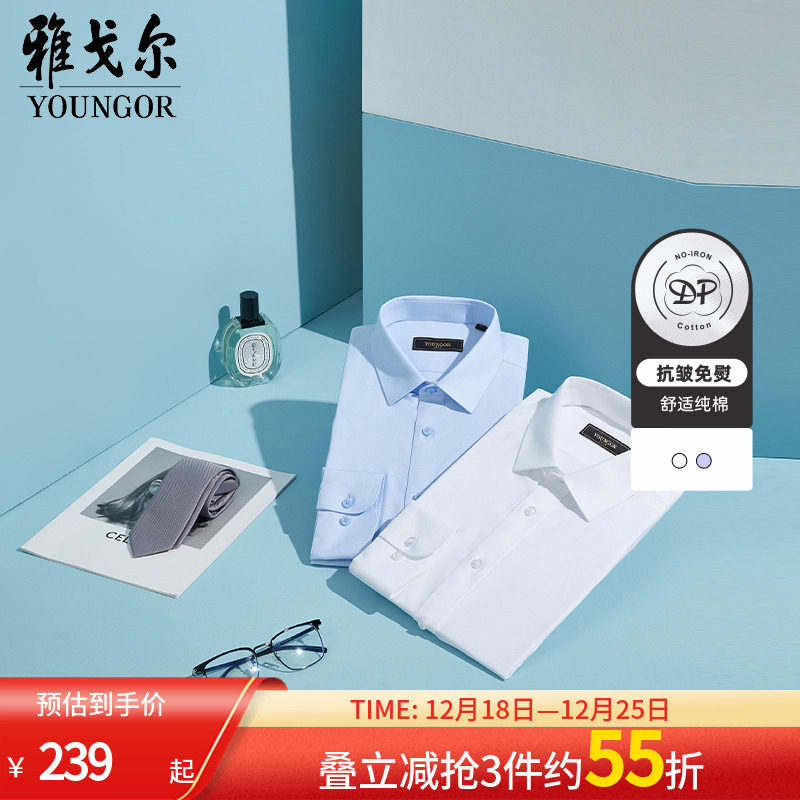 【DP免烫】雅戈尔春新品官方通勤商务休闲纯棉白衬衣长袖衬衫男