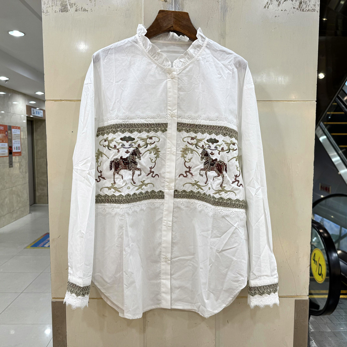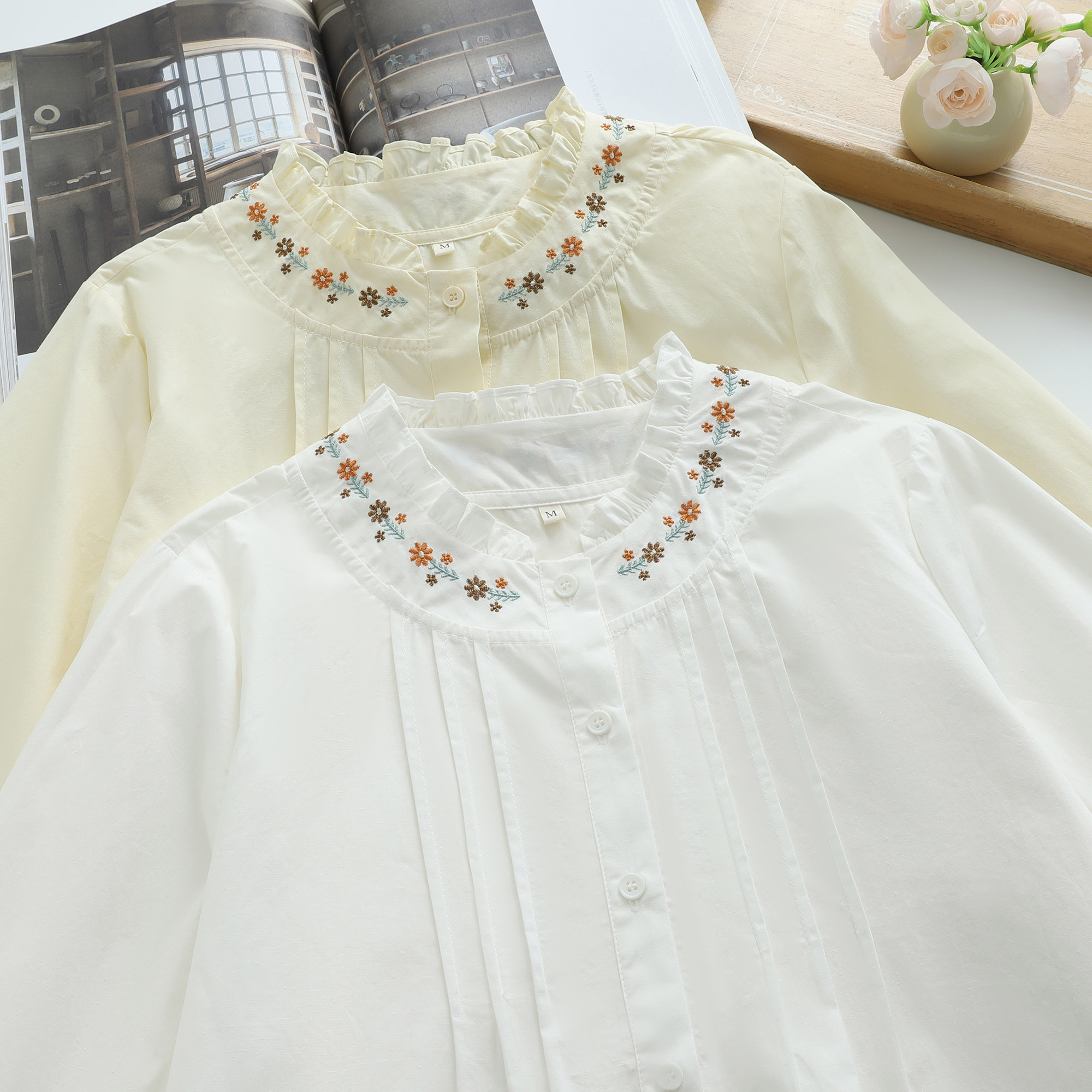 JD617 木耳花边领钉珠马刺绣花复古休闲纯棉白衬衣上衣春装2026新