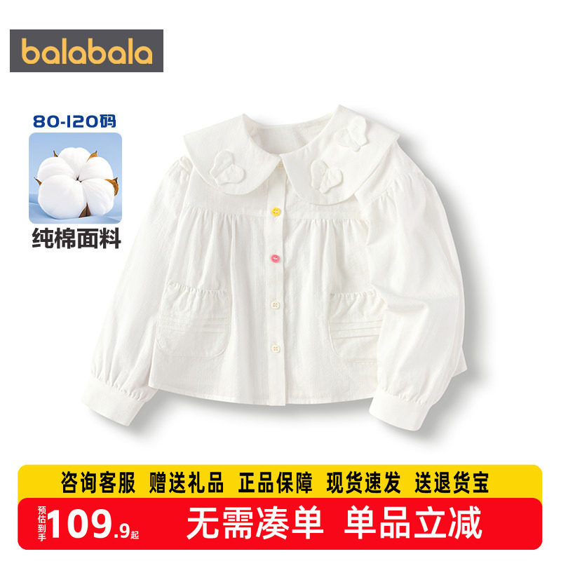 【商场同款】巴拉巴拉宝宝长袖衬衫纯棉白衬衣女童2025秋新款上衣