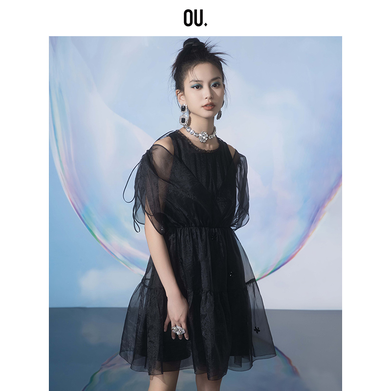 Tetu STUDIO 2025SS返单真丝欧根纱蓬蓬甜美吊带连衣裙