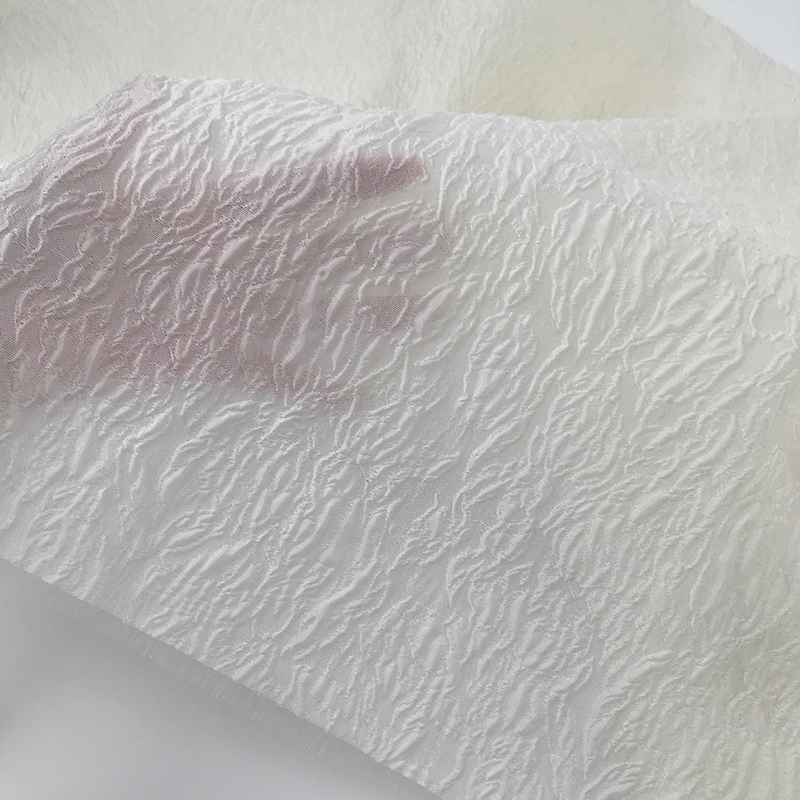 微廓浮雕珠光米白色蔷薇凹凸提花欧根纱布料连衣裙蓬蓬裙礼服面料