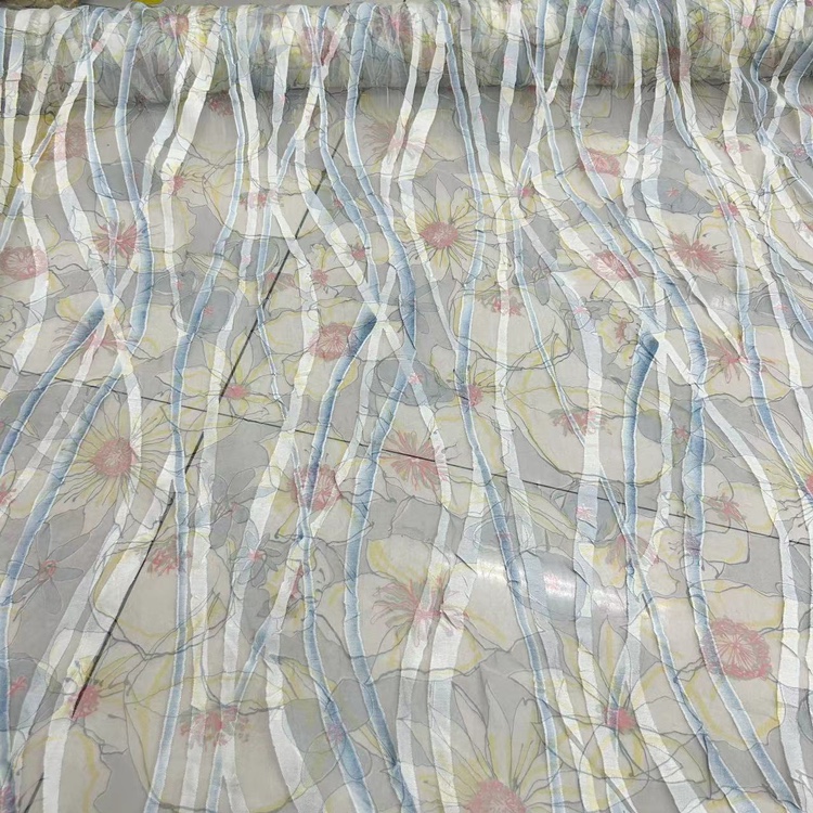 欧根纱印花烧花布料蕾丝雪纺连衣裙蓬蓬裙窗纱飘窗服装面料2.8M宽