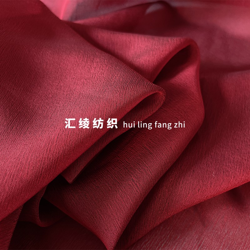 亮面酒红色轻柔欧根纱布料夏季半透连衣裙汉服蓬蓬裙演出服装面料