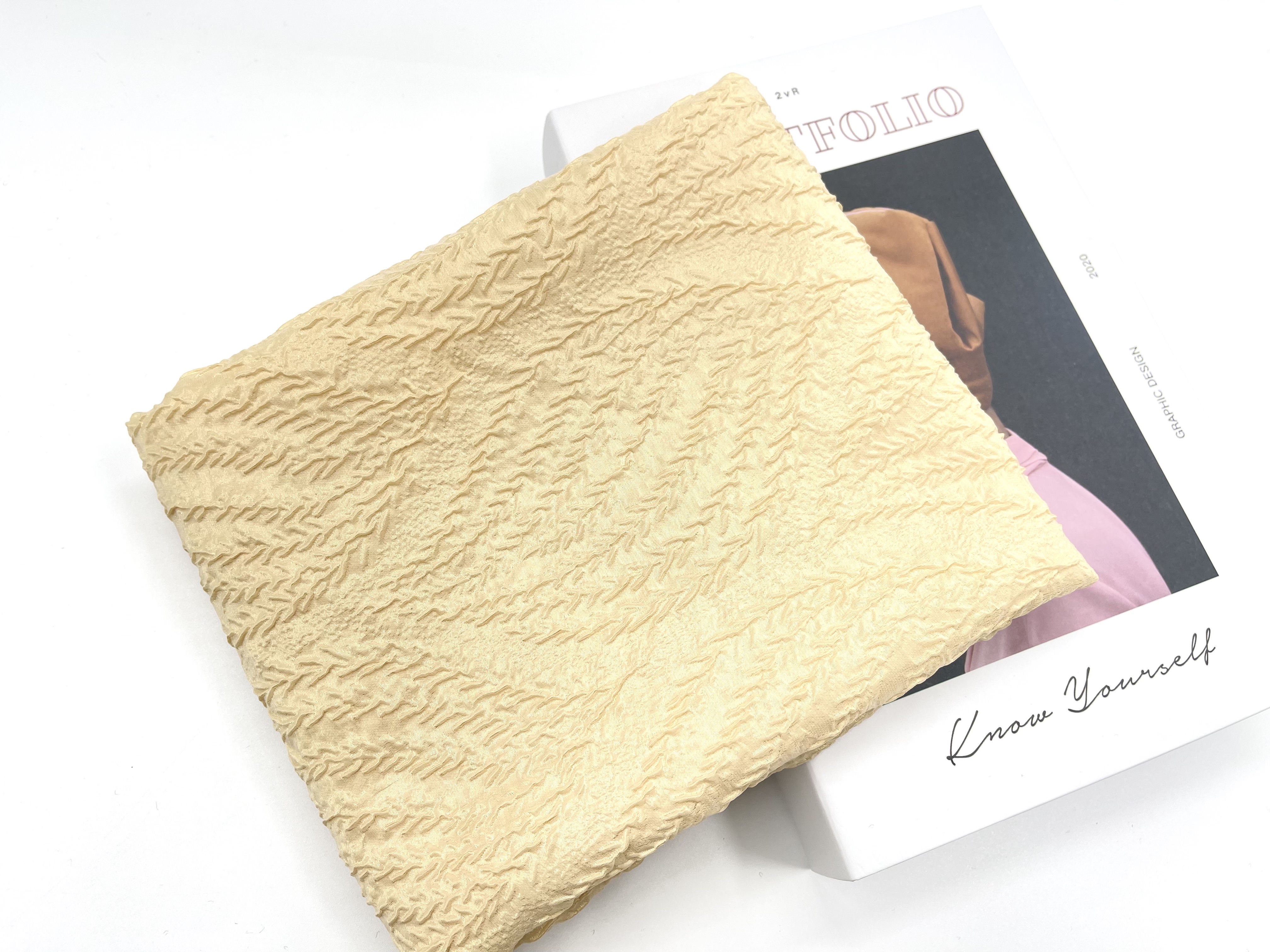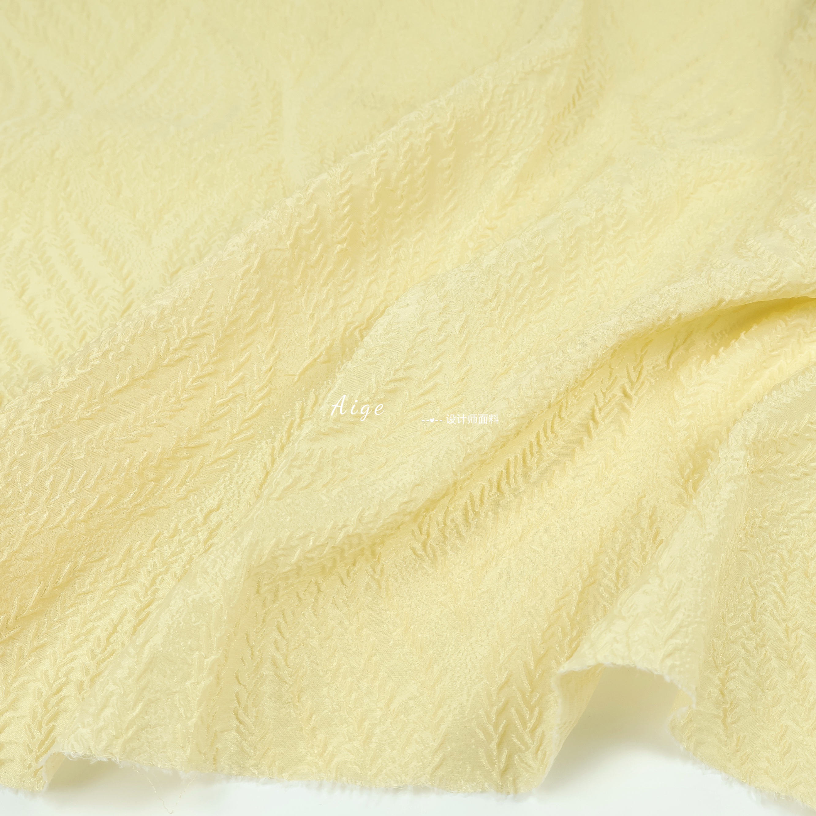 微廓浮雕 珠光黄色柳条凹凸提花欧根纱布料连衣裙蓬蓬裙礼服面料