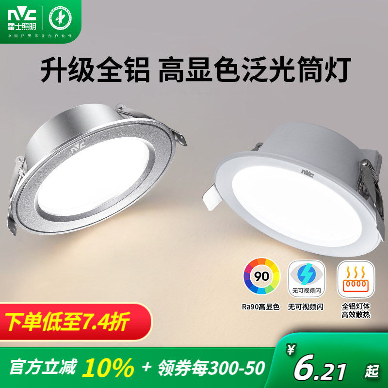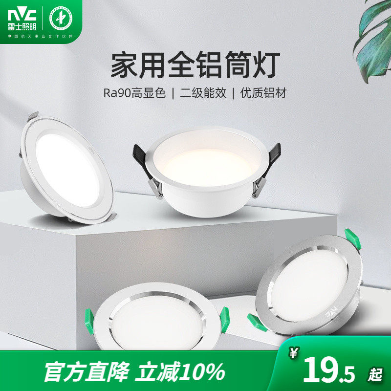 雷士照明led筒灯全铝孔灯客厅家用嵌入式洞灯吊顶天花灯过道射灯