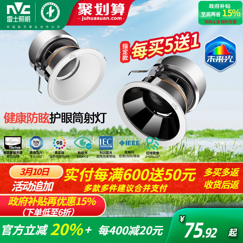 雷士照明未来光筒灯射灯led嵌入式全光谱护眼家用深筒防眩领跑者