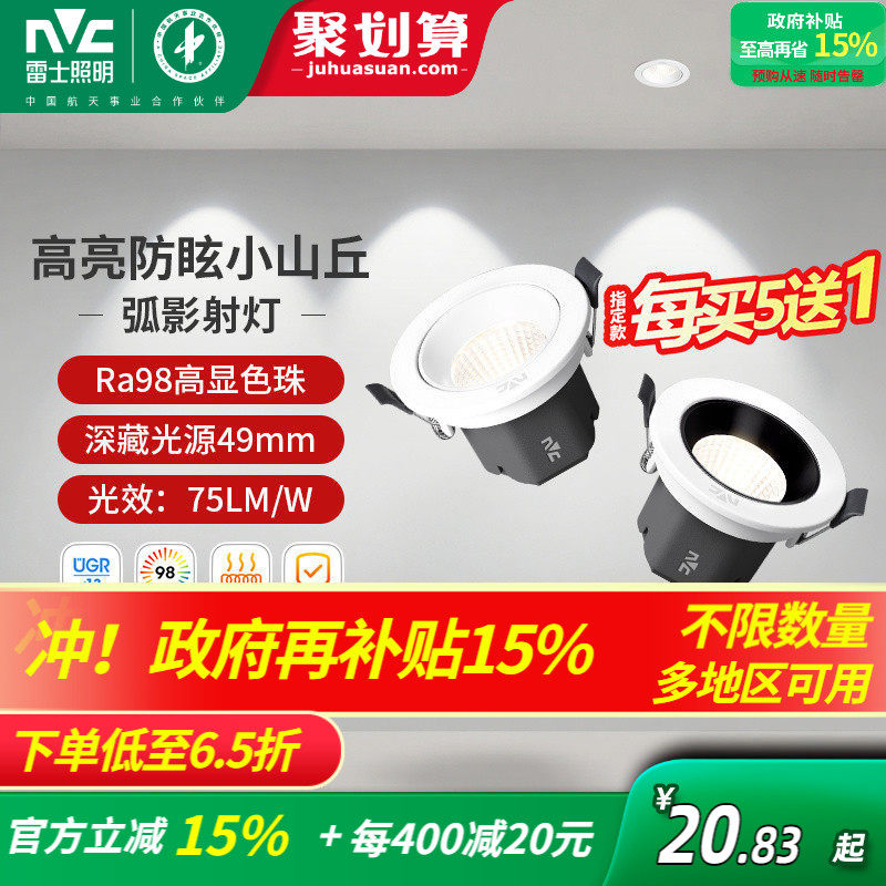雷士照明嵌入式led射灯家用客厅吊顶高显防眩可调小山丘射灯弧影