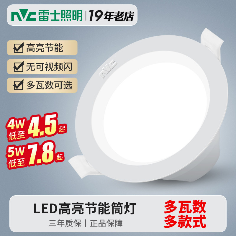 雷士照明led筒灯天花射灯嵌入式防眩客厅超薄桶灯4w店铺商用圆形