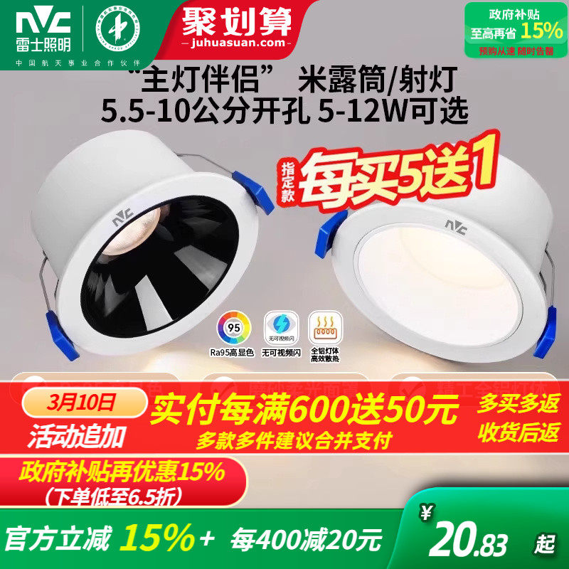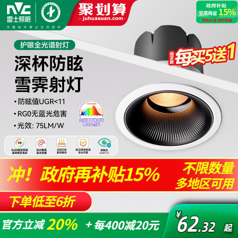雷士照明LED射灯客厅吊顶背景墙嵌入式筒灯开孔7.5高亮防眩天花灯