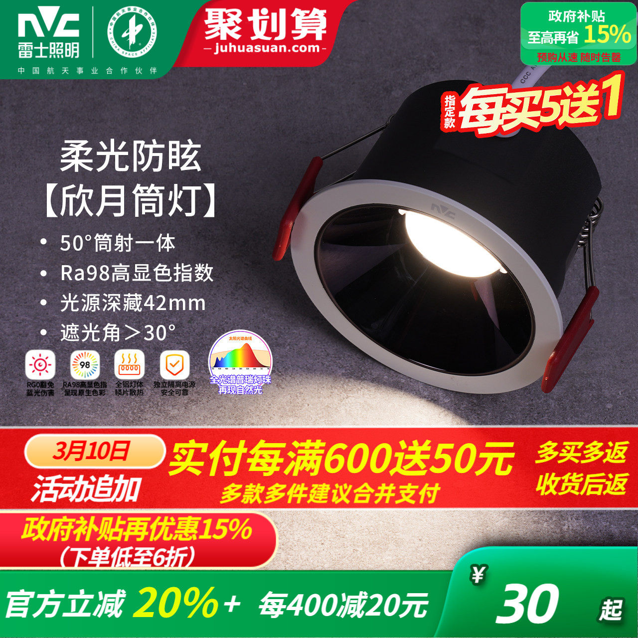 雷士照明led嵌入式筒灯天花灯黑光深杯防眩全光谱护眼筒射灯欣月