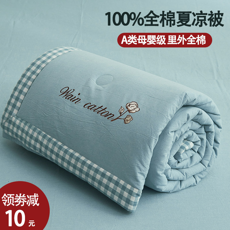 A类刺绣纯棉空调被全棉夏季薄被子单人可水洗夏被被芯夏凉被双人