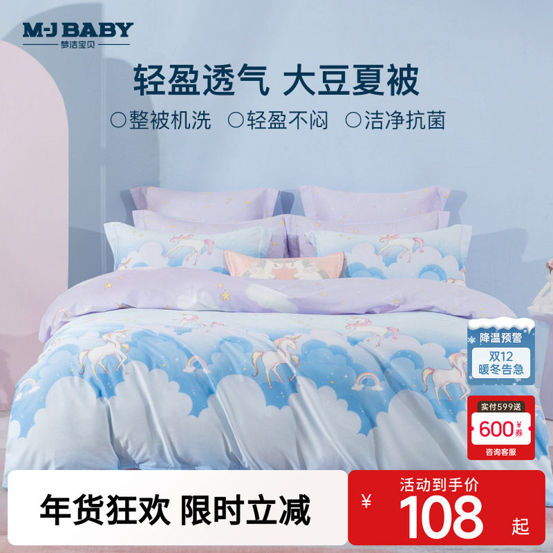 2025新品梦洁宝贝儿童可水洗夏被被芯纯棉抗菌大豆纤维被子夏季
