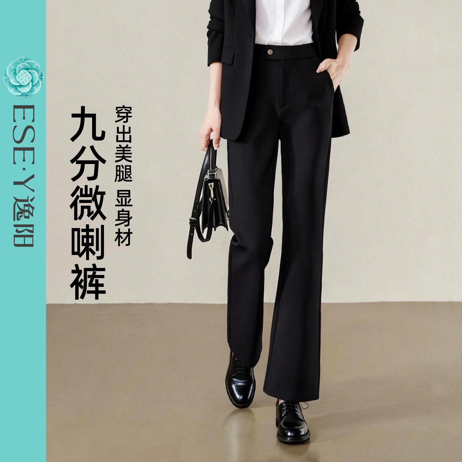 逸阳黑色九分微喇裤女2026年春季新款职业休闲裤大码西装喇叭裤子