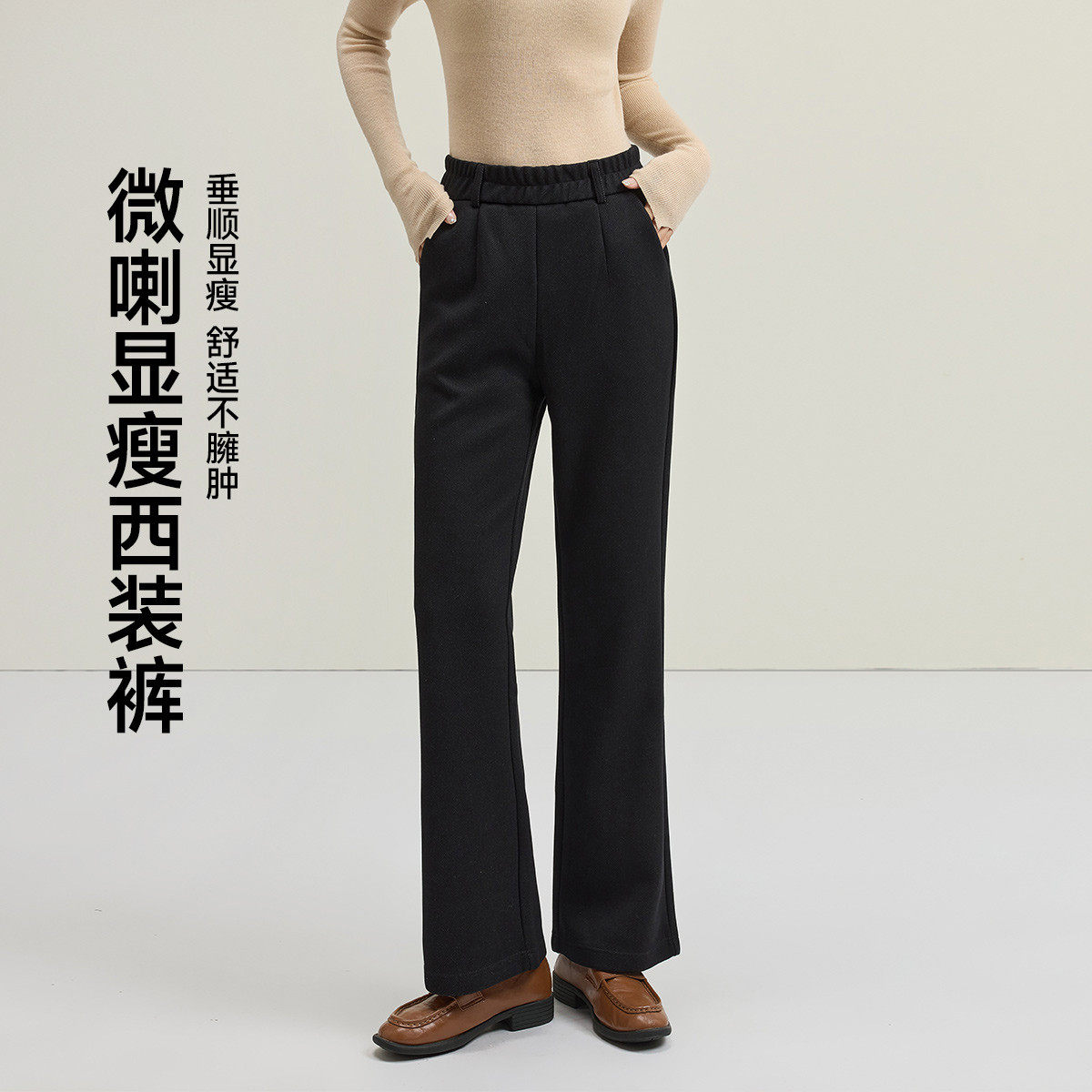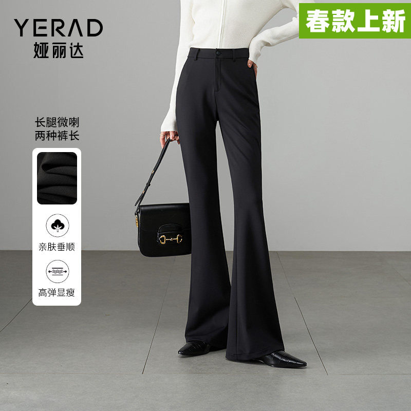 娅丽达春季新款九分喇叭裤女2026新款休闲女裤西装裤子黑色微喇裤