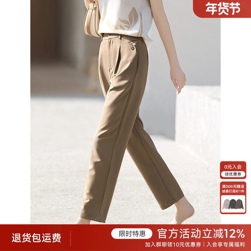 卡其色九分西装裤女士2025春季新款职业高腰大码直筒裤宽松烟管裤