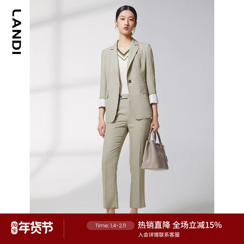 LANDI浅绿色经典小脚西装裤女2023年春季新款修身显瘦九分裤