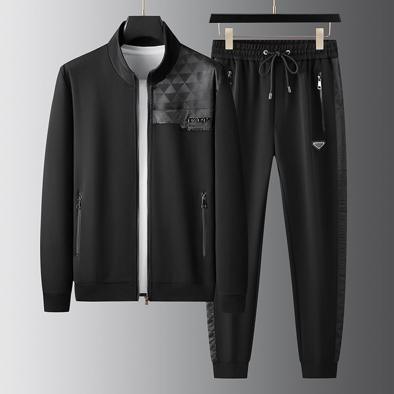 欧洲站精致时尚潮牌男士短袖套装休闲潮流大码T恤长裤两件套运动
