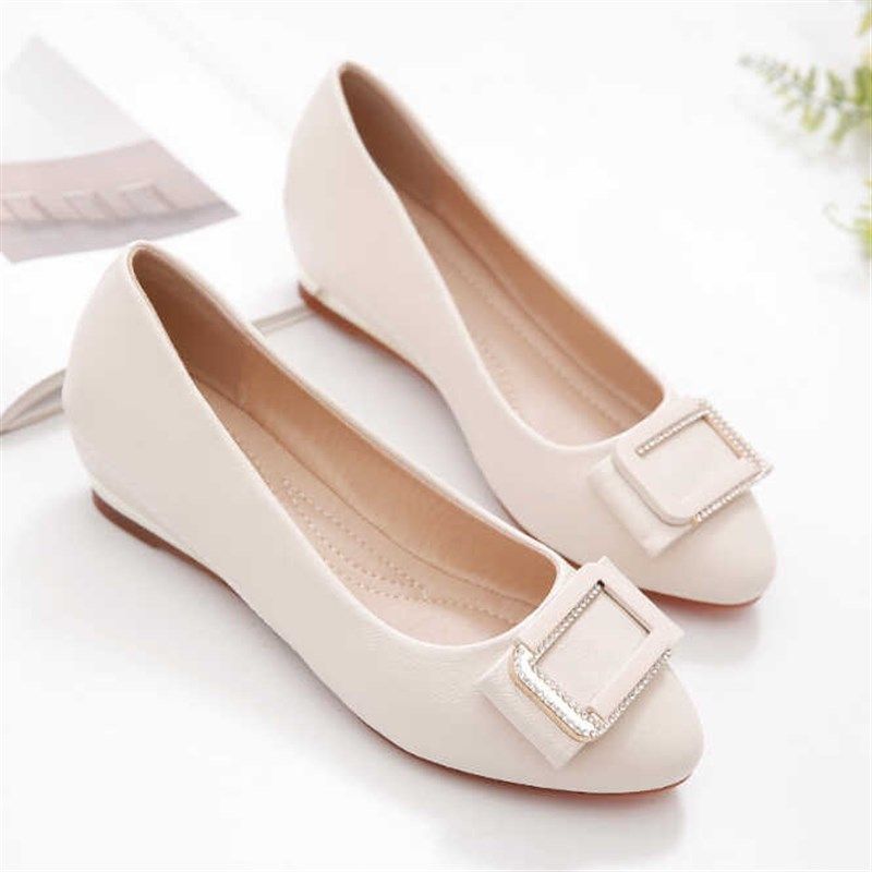 羊皮版~法式水钻气质单鞋女软皮内增高尖头平底浅口小香风瓢鞋女