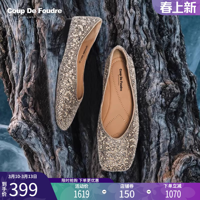 CDF女鞋轻奢秋季法式百搭法式平底水钻芭蕾舞晚晚单鞋小香风船鞋