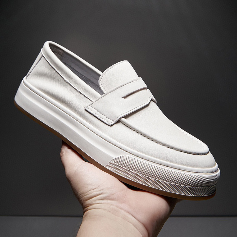 欧洲站男鞋真皮乐福鞋男一脚蹬英伦风小白鞋套脚休闲板鞋白色透气