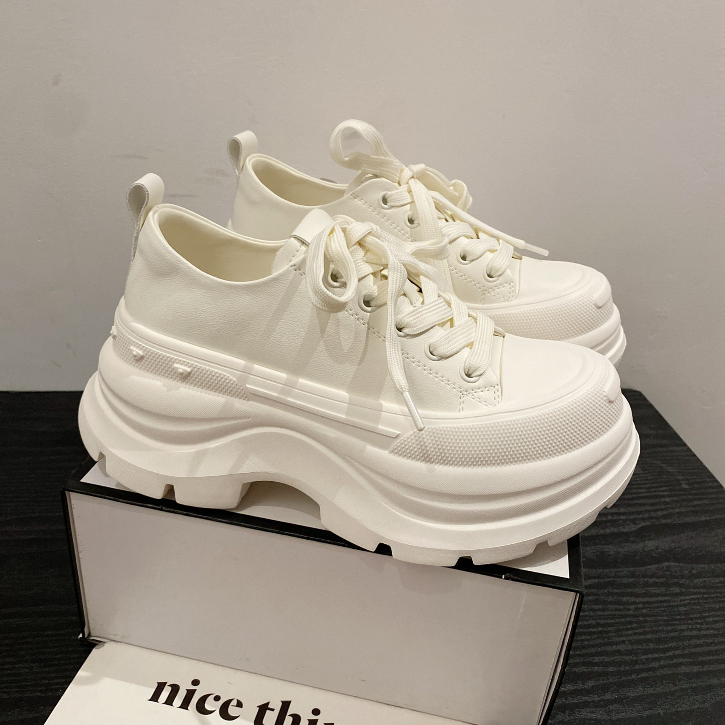 轻便增高厚底小白鞋女2026年新款英伦风真皮百搭系带休闲运动鞋