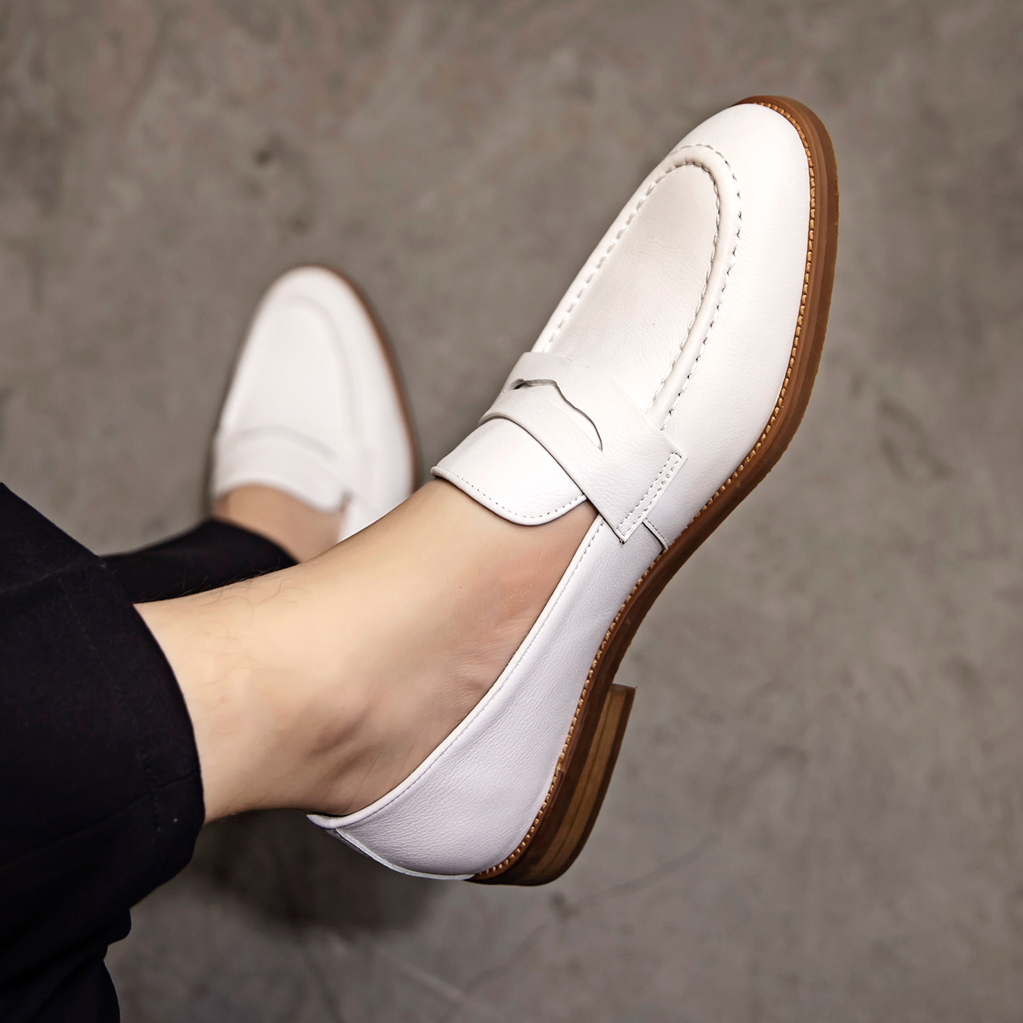 英伦风套脚单鞋女厚底增高小白鞋款 学院风百搭通勤春季真皮乐福